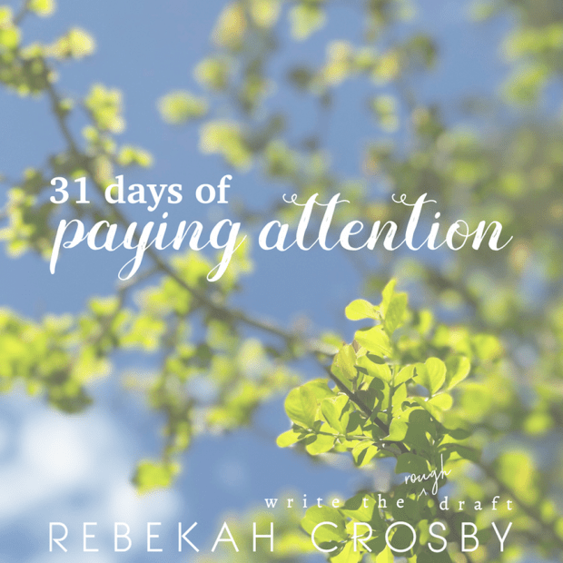 31 days of paying attention is a month-long mission to document and give thanks for the everyday, mundane, and beautiful. It’s a series I’m writing for Write 31 Days, a yearly challenge in which bloggers pick one topic and write a post on that topic every day in October. Thanks for reading along!